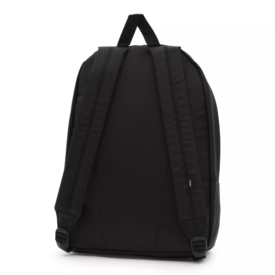 The Old Skool Backpack is a 100% polyester backpack featuring one large main compartment with a laptop sleeve (fits most 15? laptops), a front zip pocket with an organizer for quick access, and straight-cut padded shoulder straps. Measuring 16.5 L x 12.75 W x 4.75 D inches, it has a 22-liter capacity.