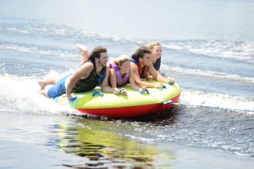 Traditionally, there has been very little difference between round, deck style tubes. You can buy one from any inflatable maker and they’re basically all the same. That is…until now. With the addition of HO Sports’ Shoftshell Technology, now you can tube all day without worrying about the abrasion or “tube rash” that you would get from a traditional nylon covered tube. This new technology is best thing to happen to tubes since the introduction of the nylon cover. So, grab a few friends and hop aboard this 4 rider deck tube and have fun out there!