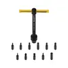 The machined-aluminum design features a removable handle, enabling it to pack up small, and an integrated magnet holds tool bits securely in place. Comes in a soft-shell carrying case.
