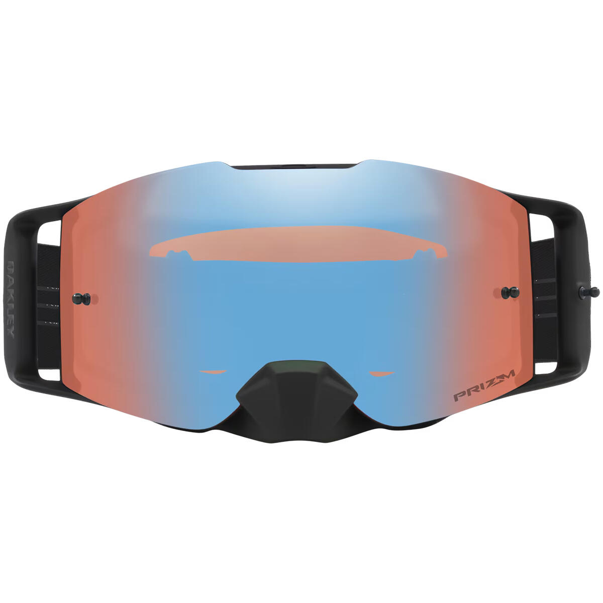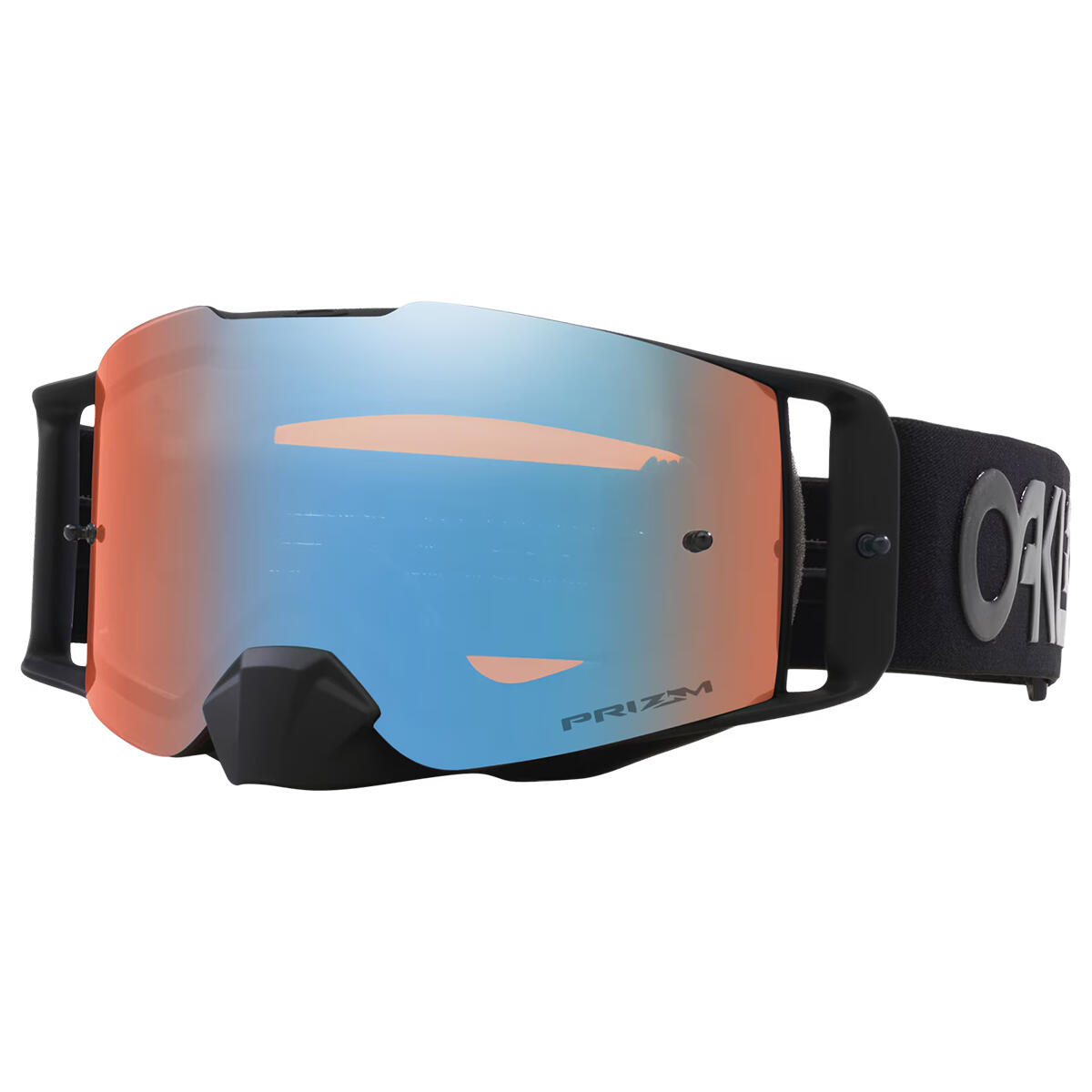 Oakley's High Impact line of goggles includes the Front Line™ MX. With a large to medium sized fit, Front Line™ MX is optimized for a wide variety of faces and is engineered to fit perfectly with most helmets. Designed with Oakley's Ridgelock Technology, changing lenses is quick and easy while still allowing for a complete lens seal to prevent harsh conditions from penetrating into your goggle. Discreet frame notches at temples provide compatibility with most prescription eyewear.