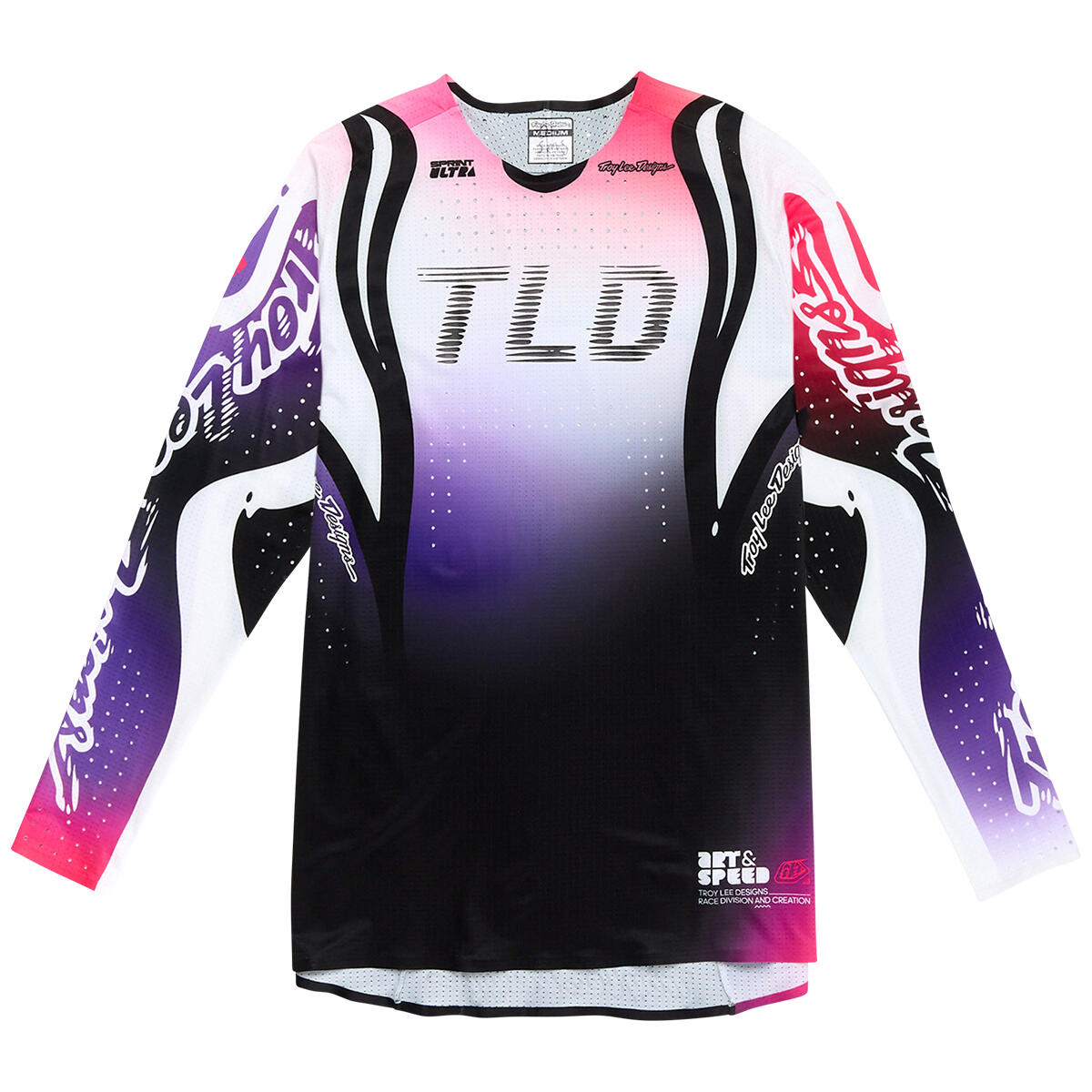 Constructed with a precision fit and Bluesign� approved Troy Lee Designs signature Ultra Knit fabric. Sprint Ultra Jerseys feature laser perforated ventilation for increased cooling airflow, mesh underarm panels to further support venting and evaporation of moisture. An added droptail hem to increase rear coverage, and welded seams on the chest, back, sleeves and side panels for increased durability.