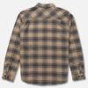 Fathom Tech Flannel in Khaki is a longsleeve shirt made from a yarndyed check fabric with chest pockets, two-piece collar & snap buttons are centre front.
