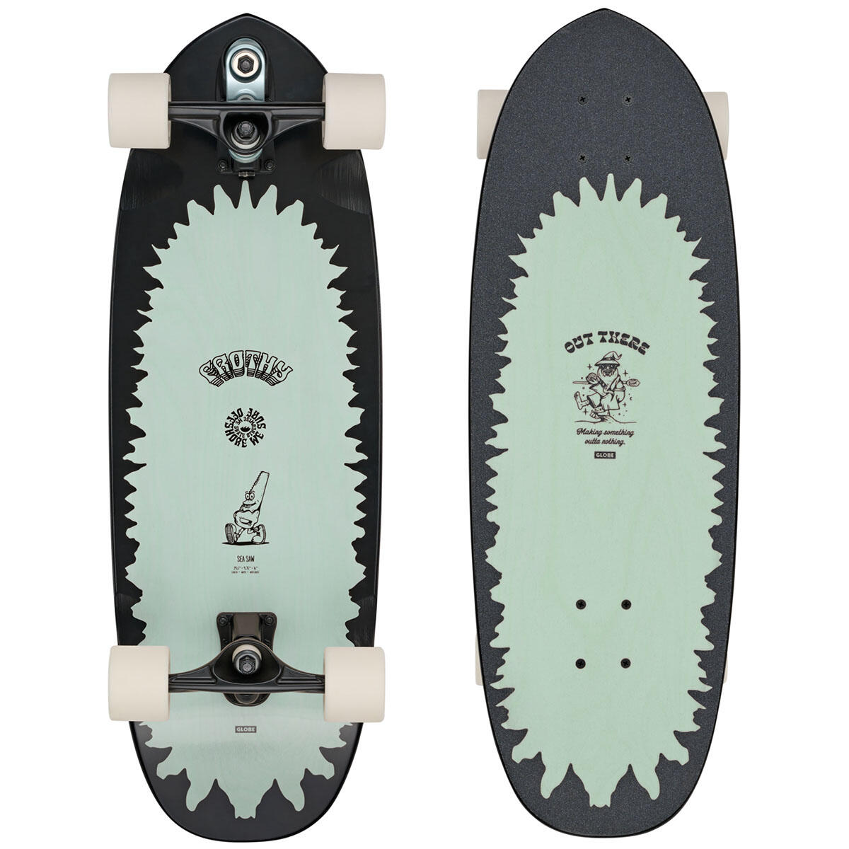 Wide short-wheelbase cruiser with Slant surf/skate trucks for a surf-like carving experience.