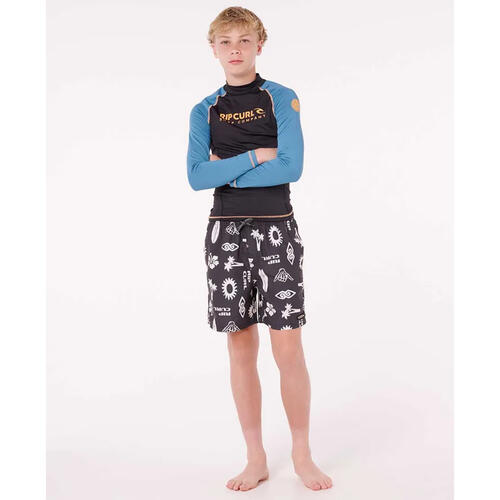 Built for older kids, this performance-fit rash vest combines sun protection with chlorine-friendly fabric and flatlock seams. The elastic boardshort loop and heat transfer graphics make it a reliable choice for serious wave riders.
