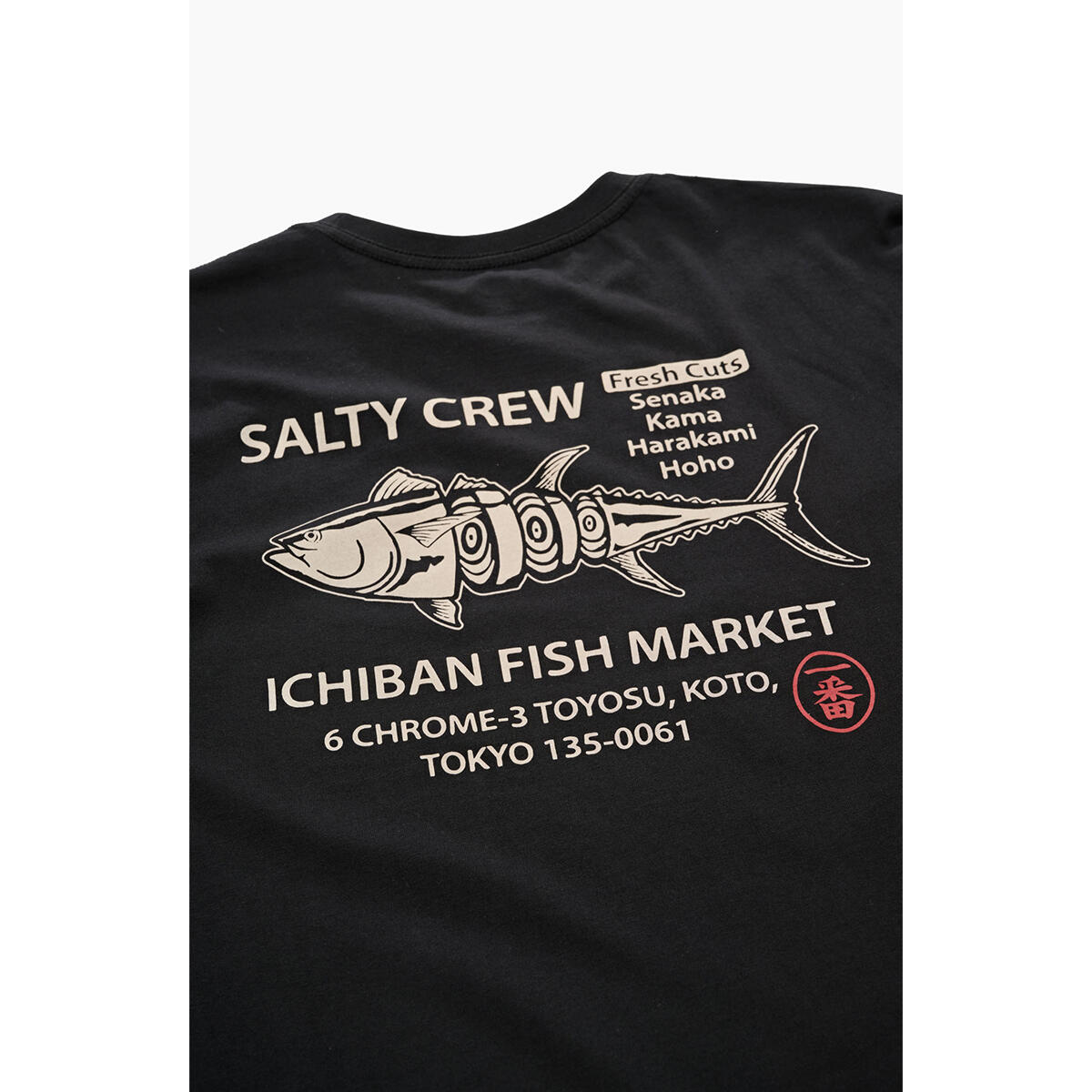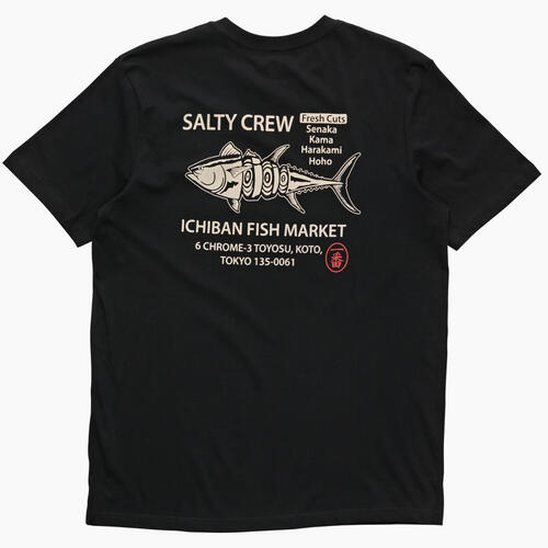 Ichiban Premium SS Tee in Black is made from soft spun cotton jersey, 160gsm in weight. Finished with Salty Crew clamp label at sleeve hem. Screen printed front and back prints.