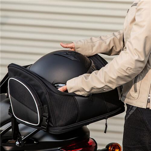 - Fully Expandable: Can hold a full-face helmet.