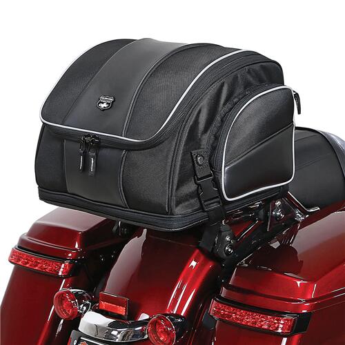 The Nelson Rigg Weekender Tail / Rack Bag is made with industry-leading UltraMax® fabric and comes with a lifetime warranty. It offers maximum UV protection against fading and features universal attachment on a rack, sissy bar, or back seat with quick release and self-fastening straps. The bag includes a 100% waterproof rain cover and has rigid construction with a mesh pocket under the lid. It is fully expandable to hold a full-face helmet and has two outer pockets for quick access items. Lockable zippers help secure the contents, and reflective piping enhances visibility. Additionally, the bag can mount directly to a seat with the optional NR-USA (Under Seat Attachment).