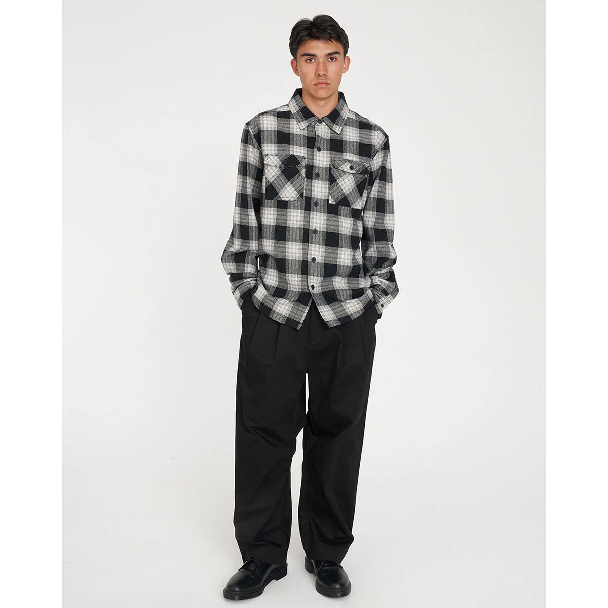• What you need to know: 100% Cotton, 300gsm, Custom Huffer yarn dyed check, Relaxed fit, Chest pocket, Huffer branded buttons, Huffer branded woven label