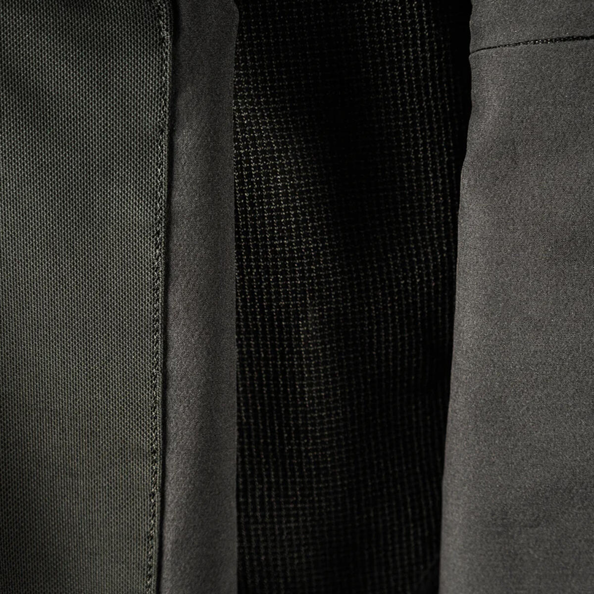 - FABRIC: Main fabric is a durable polymer fiber/elastane 4-way stretch weave • Midweight fabric • Laminated waterproof seat • Multi-row reinforced stitching • Reinforced Deflextion panels on seat