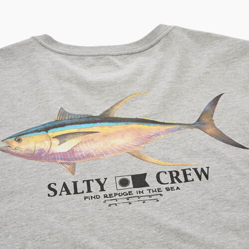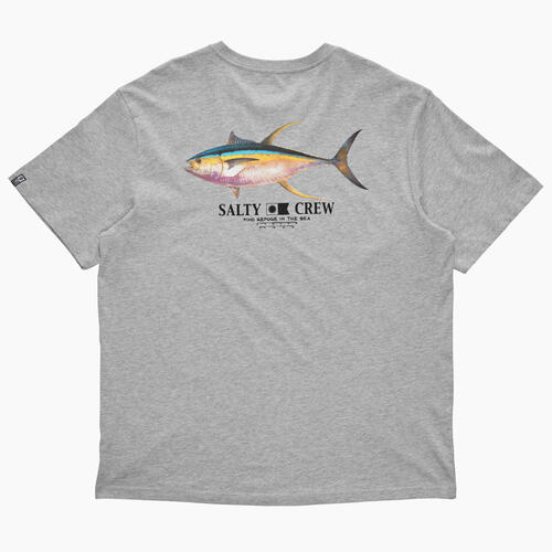Ahi Classic SS Tee in Grey Marle is made from soft spun cotton jersey, 180gsm in weight. Finished with Salty Crew clamp label at sleeve hem. Digital printed front and back prints.