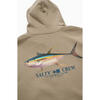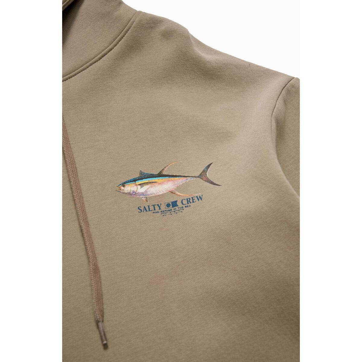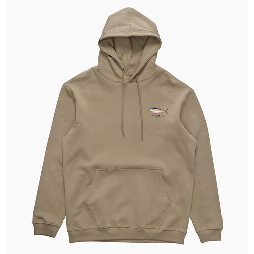 Ahi Hood in Twig is made from our signature mid-weight Cotton/Polyester Brushed Fleece, 380gsm in weight. Featuring two-piece hood with encased drawcord, rib knit cuffs & hem, self-fabric kanga pocket & Salty Crew clamp label at hood opening. Screen Printed front and back prints.