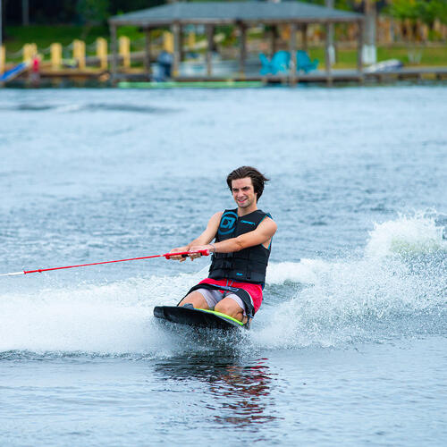 The VooDoo combines hard-charging runs at the wake with a forgiving ride. Quad molded fins at each corner provide extra tracking and the curved underside makes for quick and smooth edge transitions. The 3/4" thick pad provides plush comfort for your knees and ankles, while the 3" padded strap secures you for maximum control.