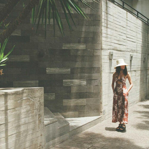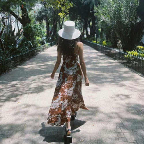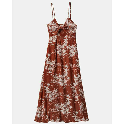 Nothing says vacation like this tropical-print maxi dress. Our Riviera Dress features a playful knotted front with a peekaboo opening, adjustable straps, and elastic smocking in the back for a perfect fit.