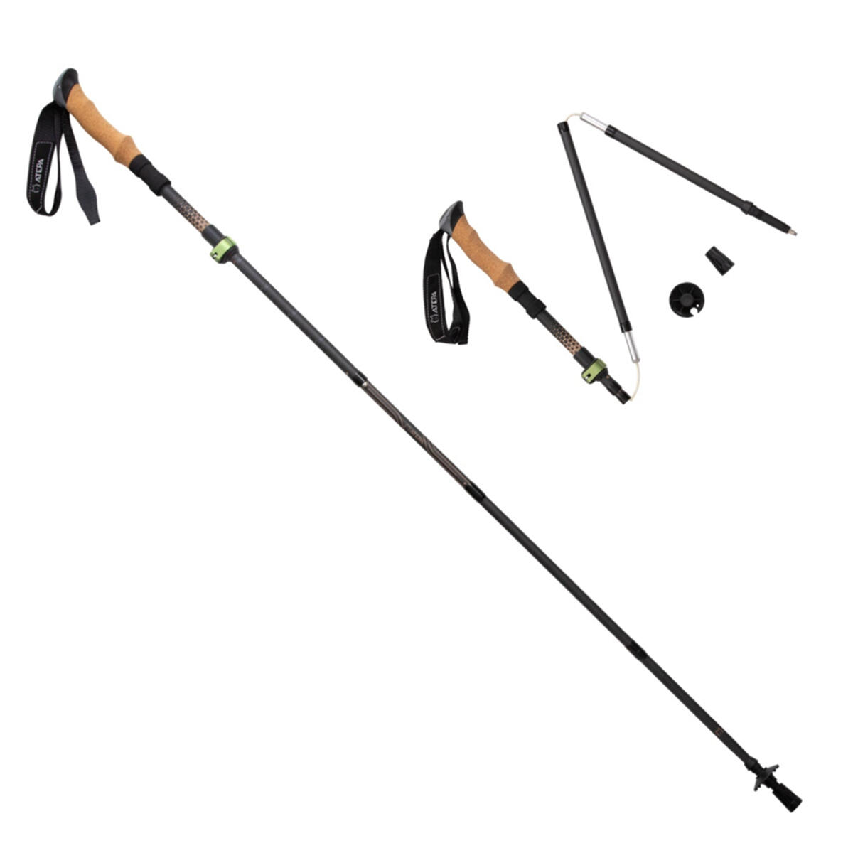 Ultra-Lightweight, Foldable Hiking & Walking Sticks (Pair) – Cork Handle, Tungsten Tips, 222g for Backpacking & Trail Use: