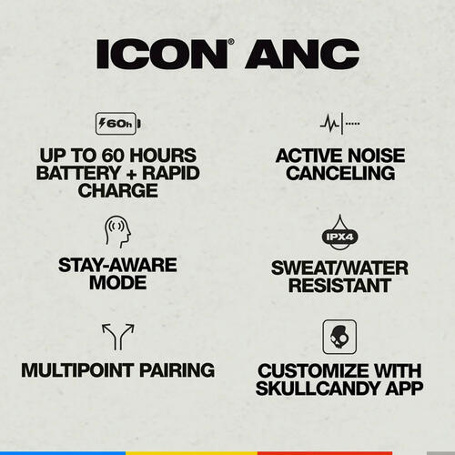 Almost 20 years ago, the OG Icon headphone blew up the boardsports world. The new Icon ANC is built better than ever with active noise canceling, sweat- and water-resistance and up to 60 hours of battery time. Icon ANC is just like the original, except it looks better, sounds better, and does way more cool stuff.