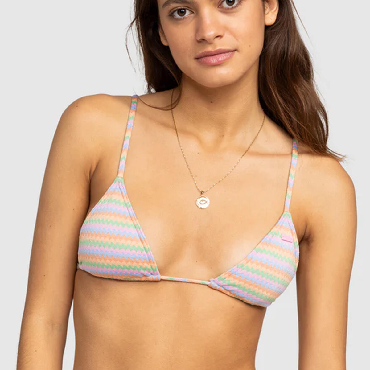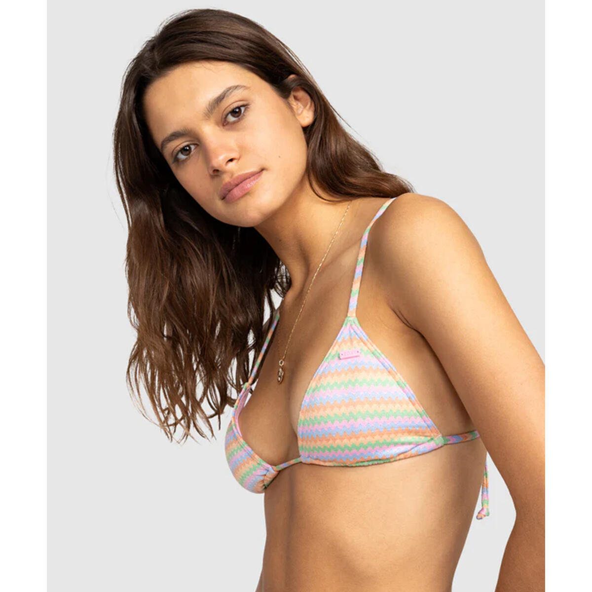 Discover the perfect balance of sporty style and feminine charm with the ROXY Wavy Stripe Mini Tiki Triangle Bikini Top. Crafted of recycled nylon-jacquard fabric, this colorful swim top features adjustable straps, low support, and skimpy coverage.
