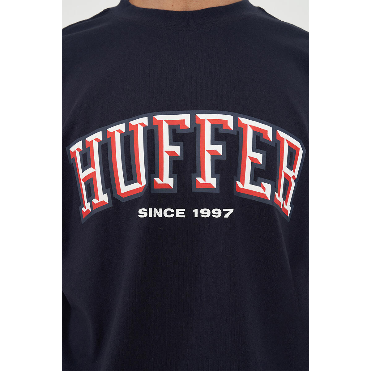 What you need to know: 100% Cotton, 220gsm, 25mm Neck rib, Premium weight jersey, Boxy fit, Short sleeve, Huffer branded placement screenprint