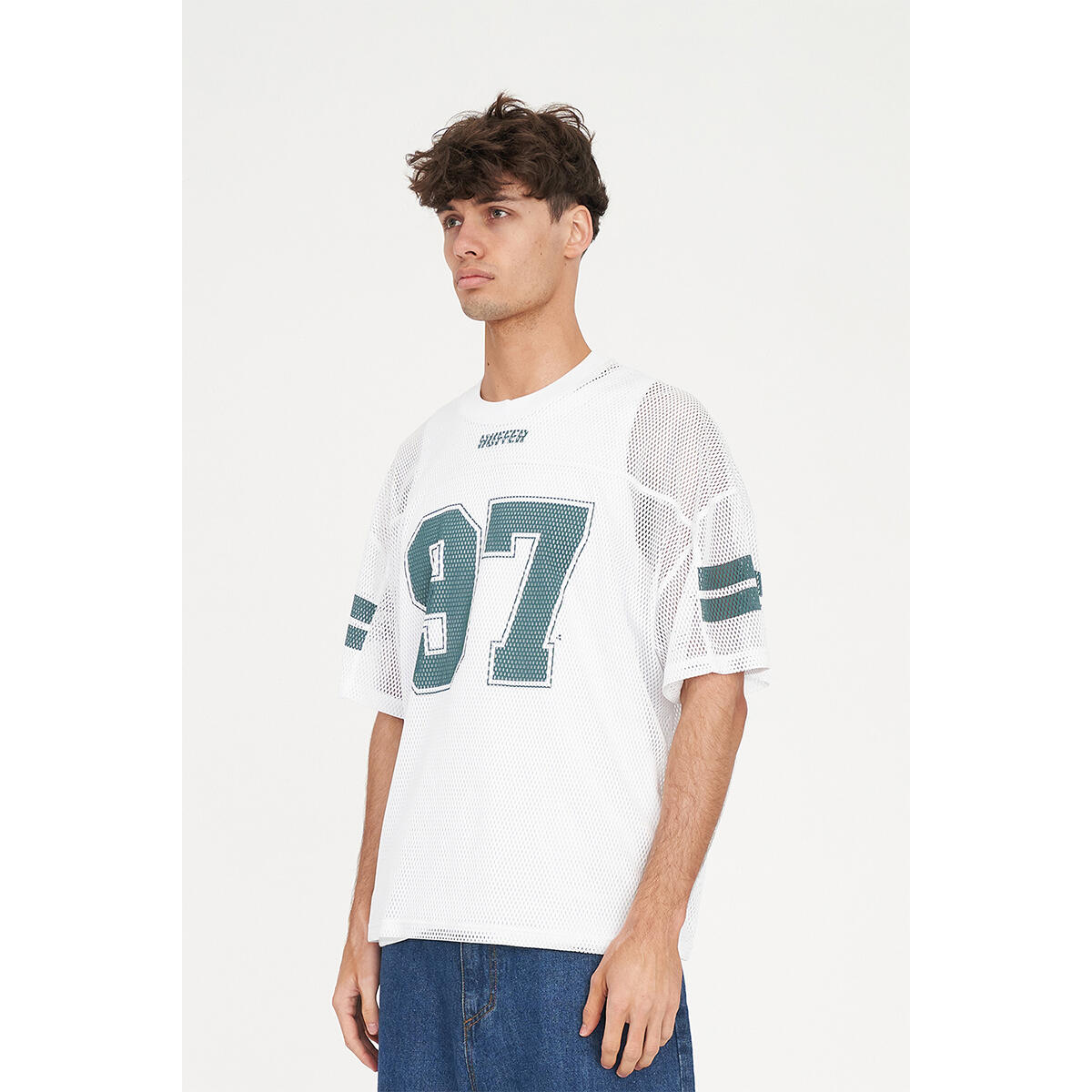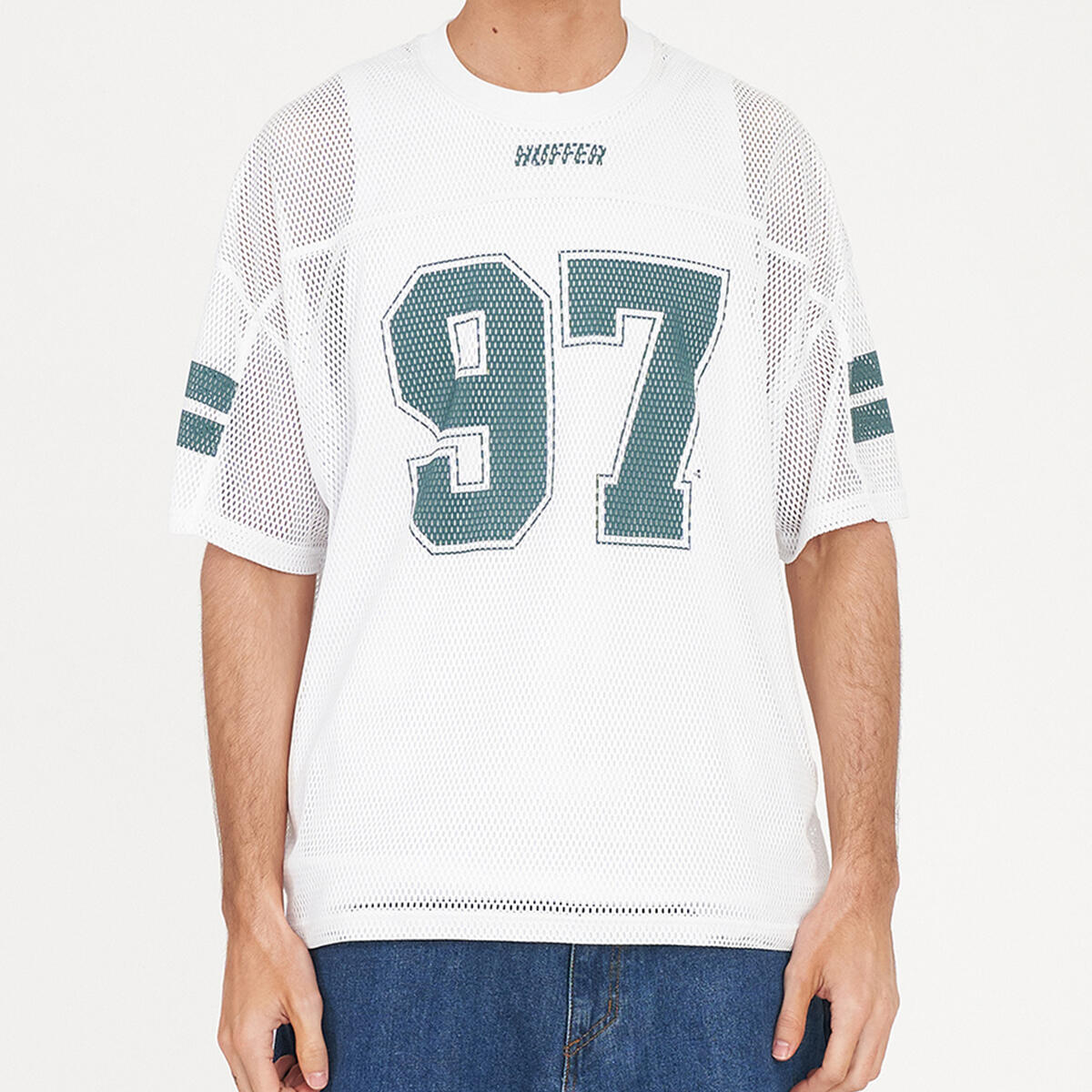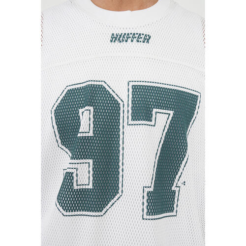 � What you need to know: 100% Polyester Mesh, 155gsm, 25mm Neck rib, Relaxed fit, Short sleeve, Huffer branded placement print