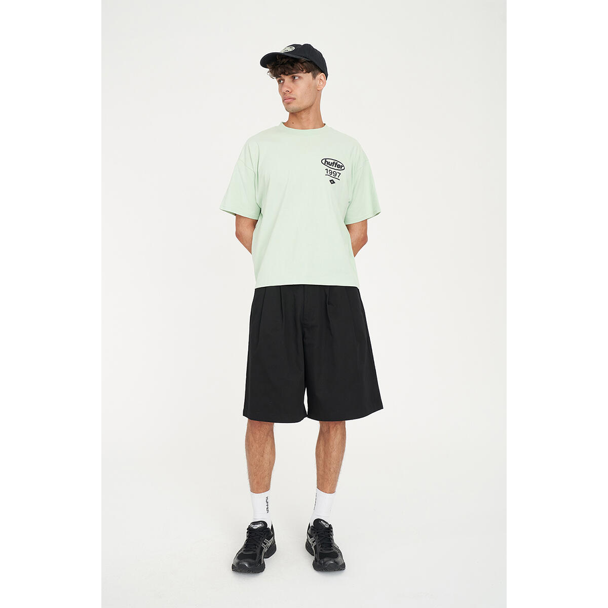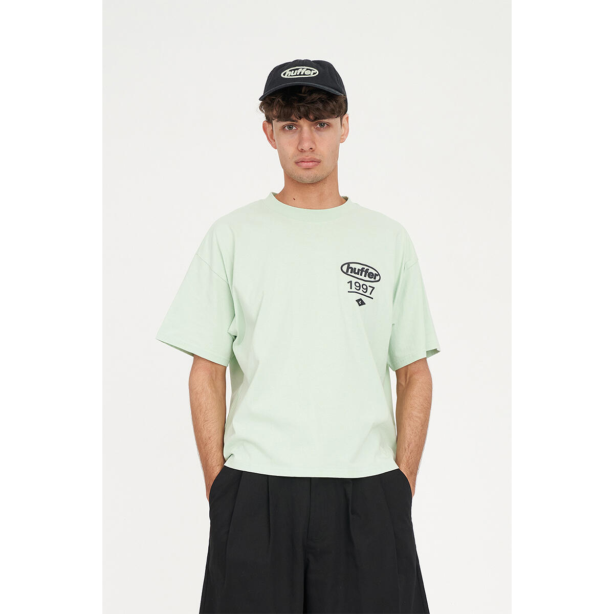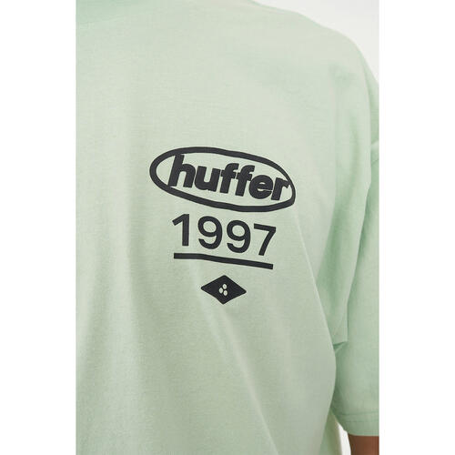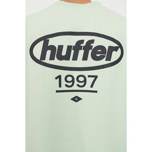What you need to know: 100% Cotton, 220gsm, 25mm Neck rib, Premium weight jersey, Boxy fit, Short sleeve, Huffer branded placement screenprint