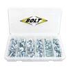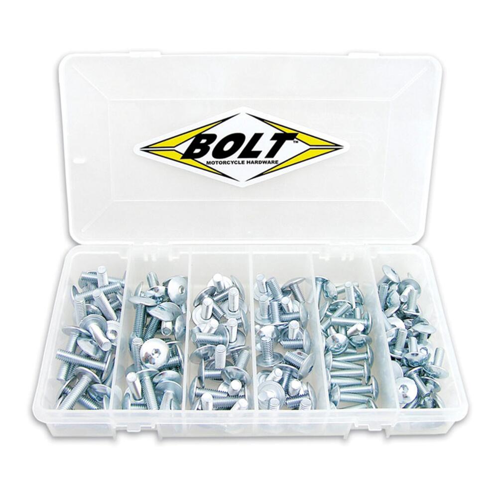 Designed by extensively reviewing the needs of mechanics and riders at the dealership and at the racetrack, BOLT fastener kits are multi-piece kits consisting of factory style fasteners. The range includes: socket head bolts, button head bolts, flange bolts, nylon removable rivets, Fuji-lock nuts, fairing bolts, plastic clips, metal locking nuts, nylock nuts, washers, screws plus many different bolt/nut combinations.