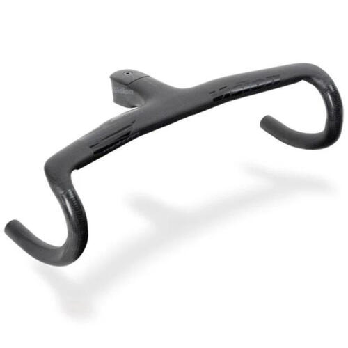 Metron 5D integrated handlebar, the stiffest and most aero integrated handlebar and stem system. Mixing aerodynamics and ergonomics, the unique shape includes our Aero-Ergo central section. With a slight rise from the stem clamp and a 10 degree forward bend, the 5D accommodates the natural position of your arms for more comfort and easier breathing, while the wing-like shape of the bar top aids aerodynamics. Reinforced carbon fiber construction gives a great strength-to-weight ratio. The 5D features internal cable routing, with guides that accommodate wiring for electronic shifting. Now available with the new ACR System, a fully integrated Aerodynamic Cable Routing solution that routes all cables, wires, and hoses internally.