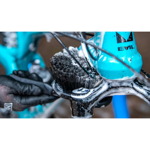 This Soft Washing Brush has been designed with a sintered bristle compound so you can clean your bike frame and components while also caring for delicate finishes. Its unique design features an impact resistant, dual density handle that won’t slip in extreme conditions, an oversized head for fast cleaning of large areas and rubberised impact zones for maximum protection.