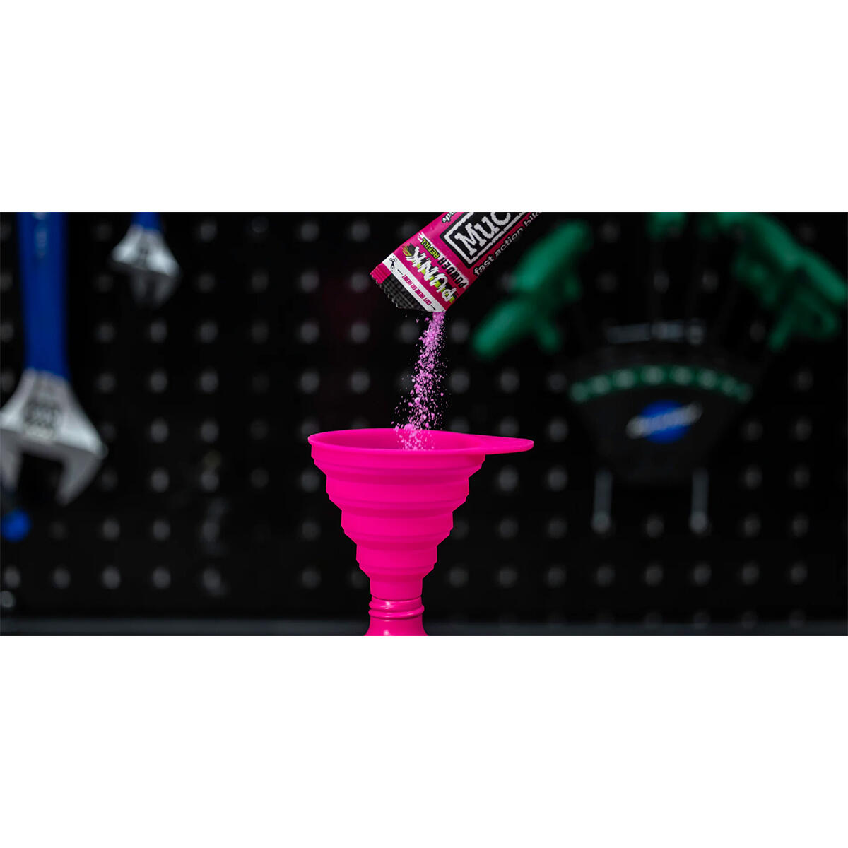 Calling all clean-freaks and eco-warriors, our new Collapsible Silicone Funnel tells spillages to “do one!”, meaning you’ll never lose a drop of the good stuff again! It’s now super easy to refill your Bottle For Life with Punk Powder, Nano Tech Concentrate, Drivetrain Cleaner, or any other rad refills our Project Green team think up in the future. Help us all stay clean, green and keep kicking plastic use in the nuts!