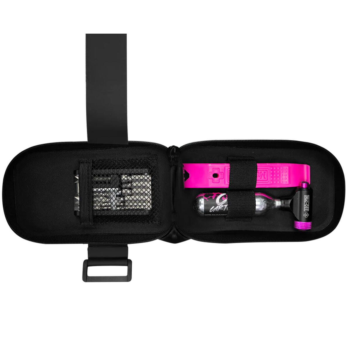 - Designed to fit inner tube, Muc-Off mini pump or CO2 inflator, Rim Stix, multi-tool, Repair Kit, and other accessories (not included)