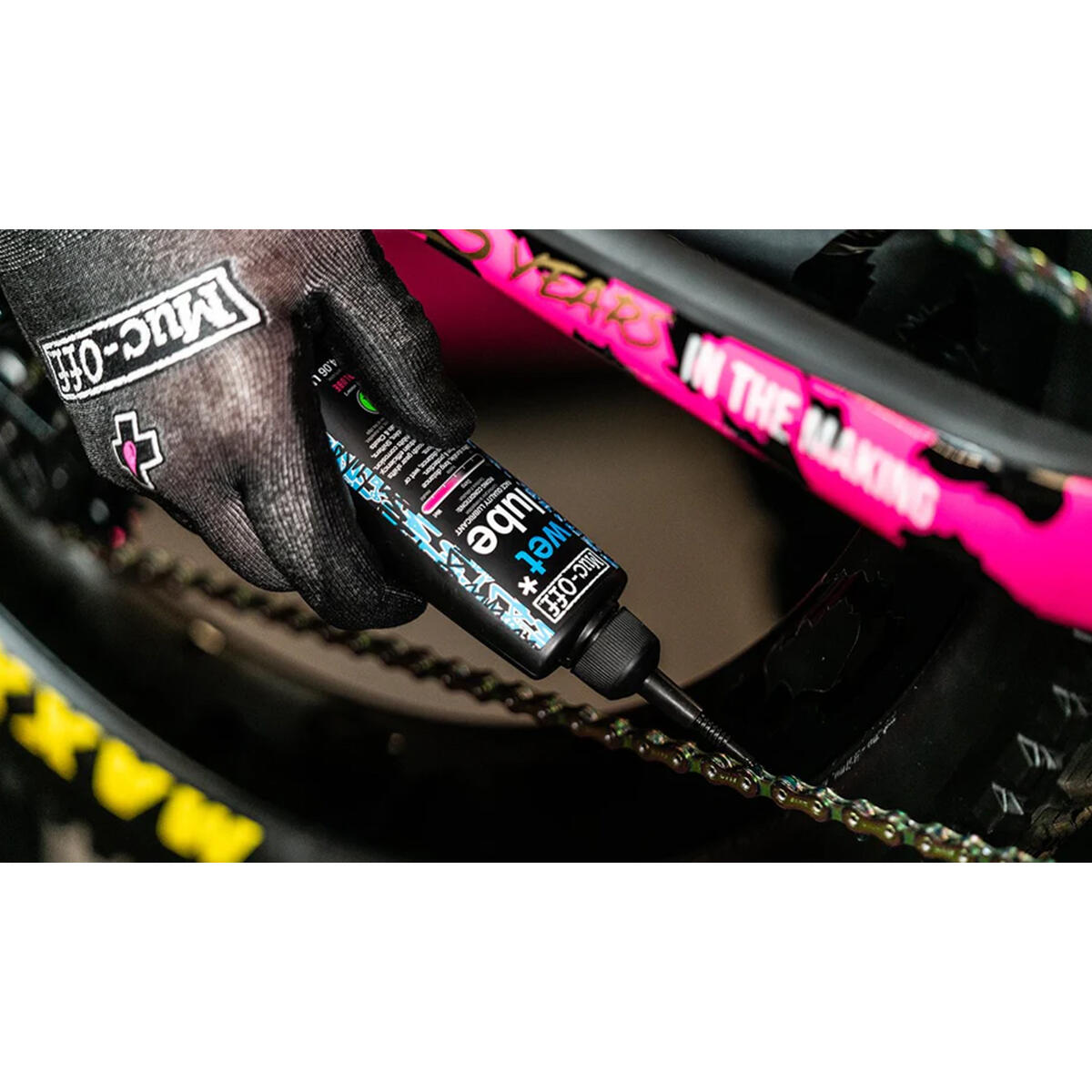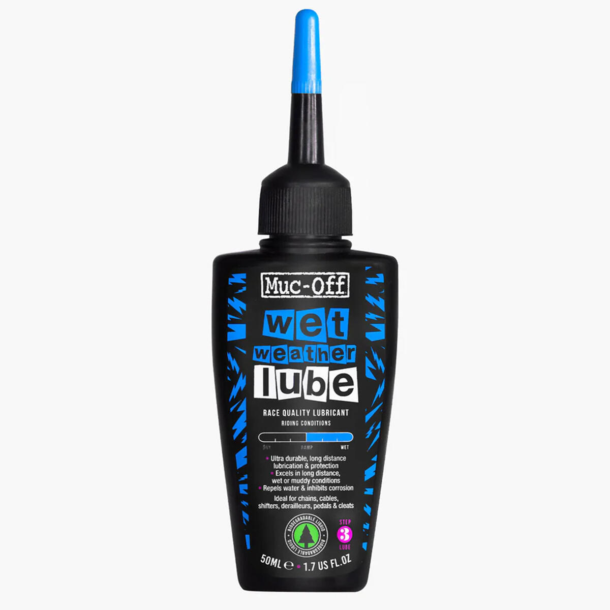Muc-Off Wet Chain Lube is an ultra-durable, long-distance bicycle chain lubricant and oil that’s been specifically formulated to excel over long distances in wet or muddy conditions. Our state-of-the-art formula has been derived from natural ingredients and made completely from renewable sources.