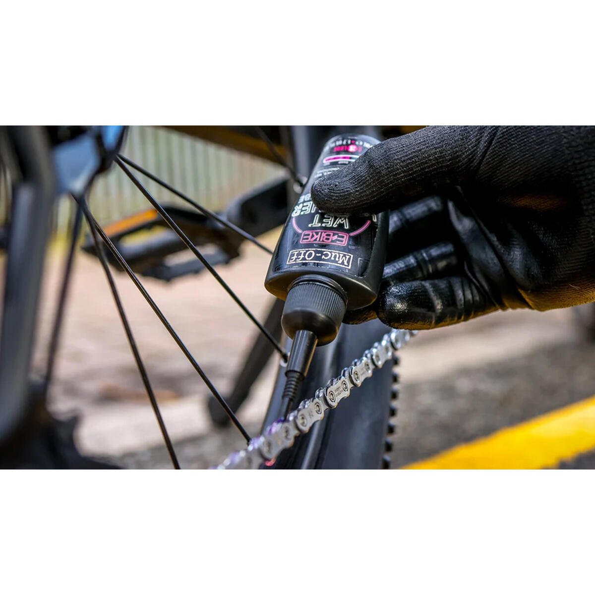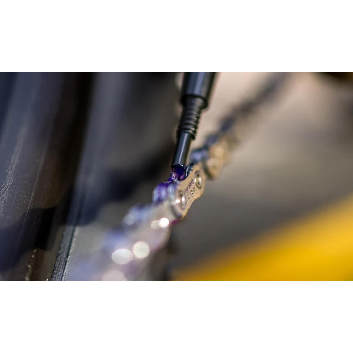 - Shake bottle vigorously and apply lube ensuring every part of the chain is treated.