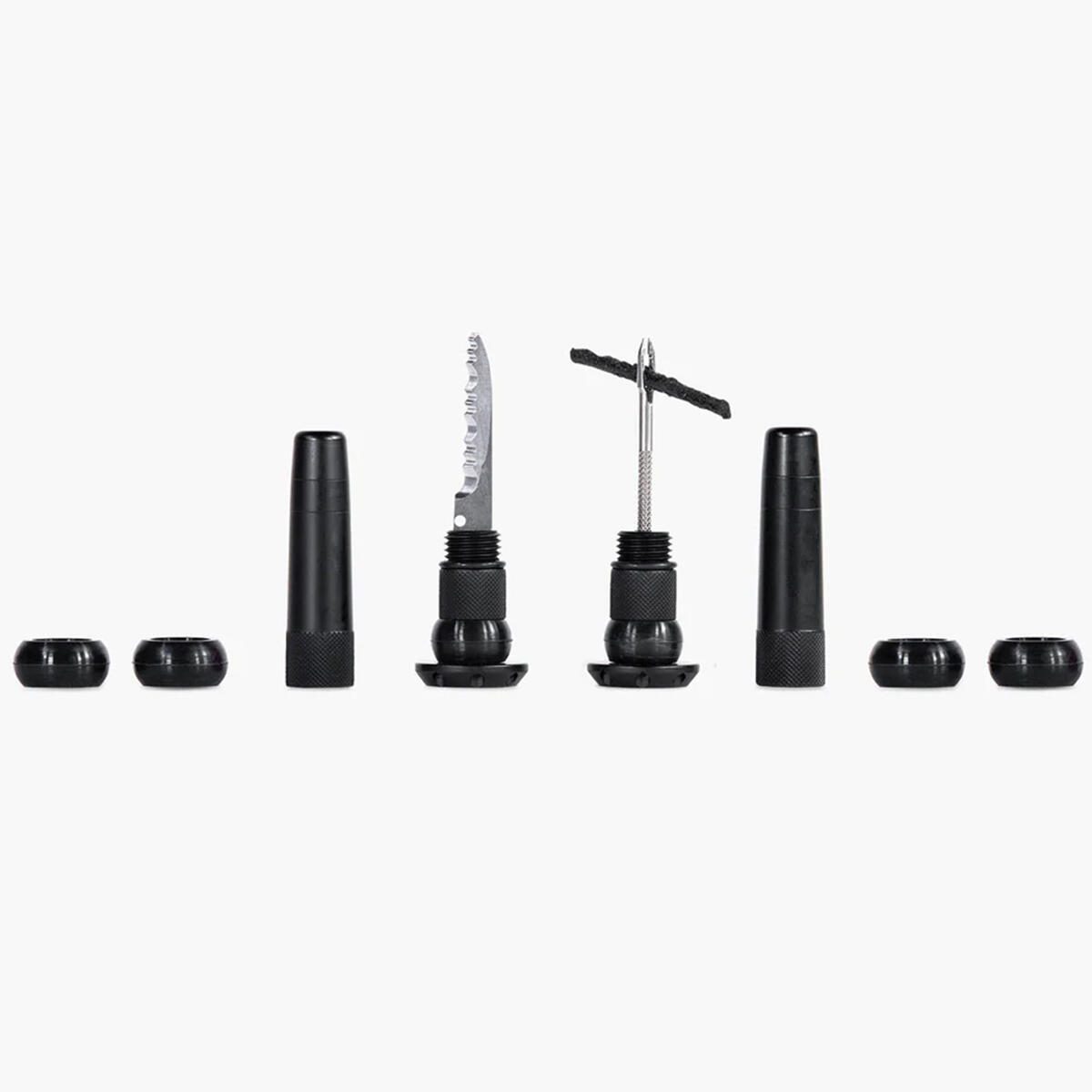 Each lightweight and durable set contains everything you need to get back riding when you’re stuck battling a hole that’s just not sealing: a stainless steel 2-in-1 puncture plug reamer tool, a variety of different sized tyre worms and a trimming knife.
