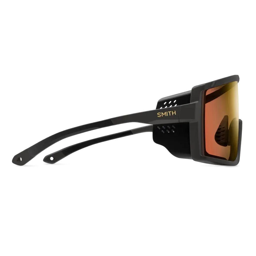 Pursue your thrill in the backcountry. From skin track to boot pack to full-speed descents, the Smith Pursuit sunglasses can do it all. They blend goggle-like coverage with the airflow and easy-to-wear feel of sunglasses that perform while you're climbing and descending. Our ChromaPop™ Glacier Photochromic lens adapts to changing light conditions and delivers color and contrast-boosting performance throughout the full range of the lens. Removable, magnetic side shields add peripheral light coverage, and adjustable temple arms let you customize the fit. A pack-friendly, screwless hinge creates a fail-safe backcountry design, and a low-profile case ensures minimal storage in your pack.