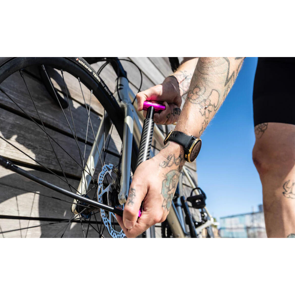 AirMach Carbon can be stowed in your backpack, or it can easily be attached to your frame with the supplied mounting bracket, so it’s on hand when you need it most.