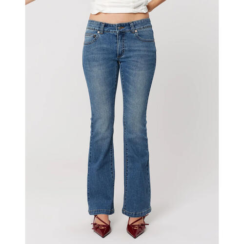 Designed with a low-rise waist that sits comfortably on the hips, these jeans hug through the butt and thighs before flaring into a clean bootcut leg for a balanced, elongating silhouette.