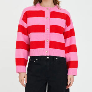 Huffer Elle Crop Stripe Cardigan Pink/Red